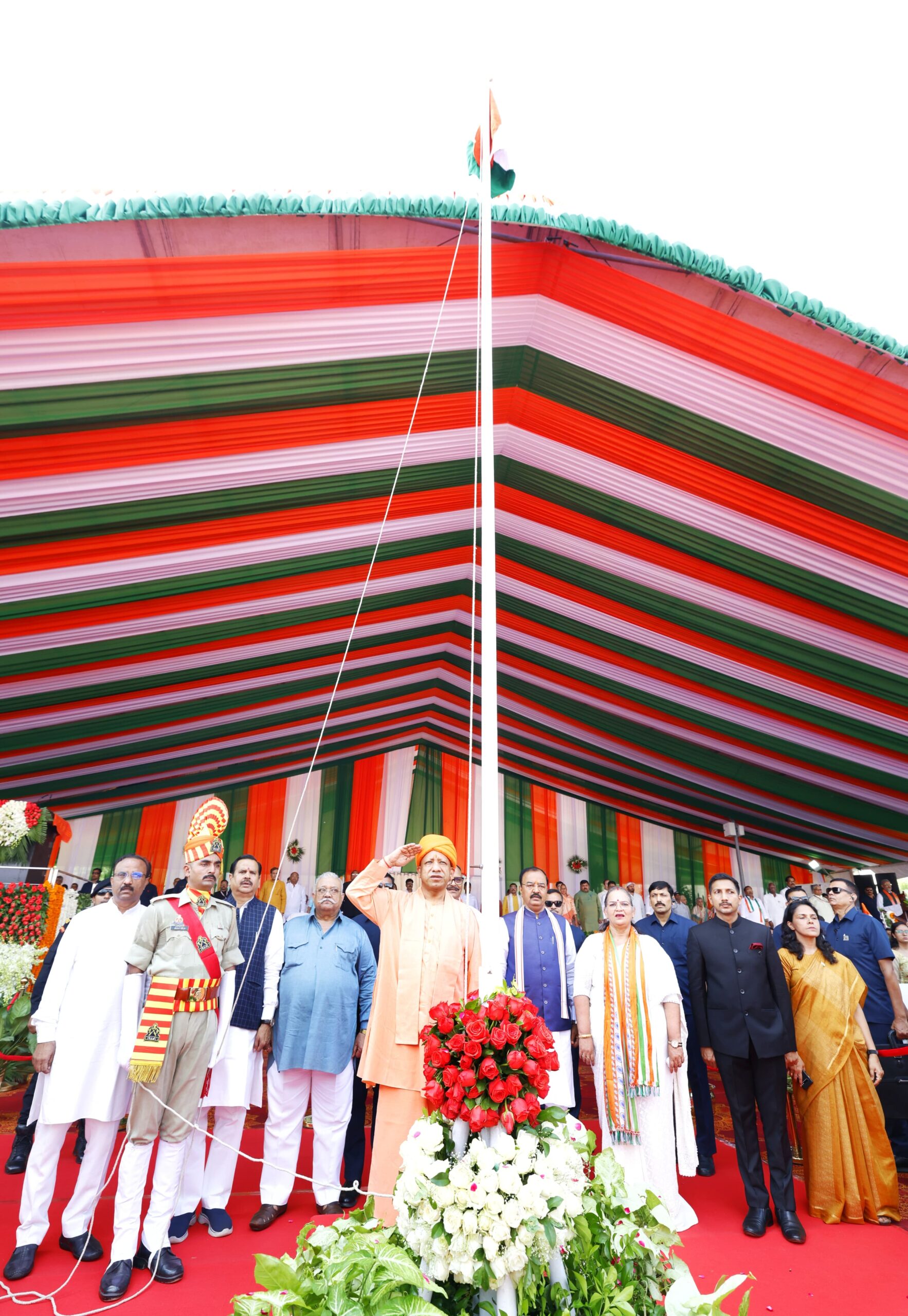 Lucknow, August 15 (H.S.). Uttar Pradesh Chief Minister Yogi Adityanath on Friday first hoisted the flag at his official residence and then hoisted the flag in the Vidhan Bhavan premises and paid tribute to the freedom fighters and the great sons of the country who sacrificed everything for the security of India. In his address, he counted the achievements of the 8-year tenure of his government along with the Narendra Modi government at the Center and also launched a scathing attack on the opposition. On this occasion, he called for making Uttar Pradesh poverty free and a state with a trillion dollar economy.