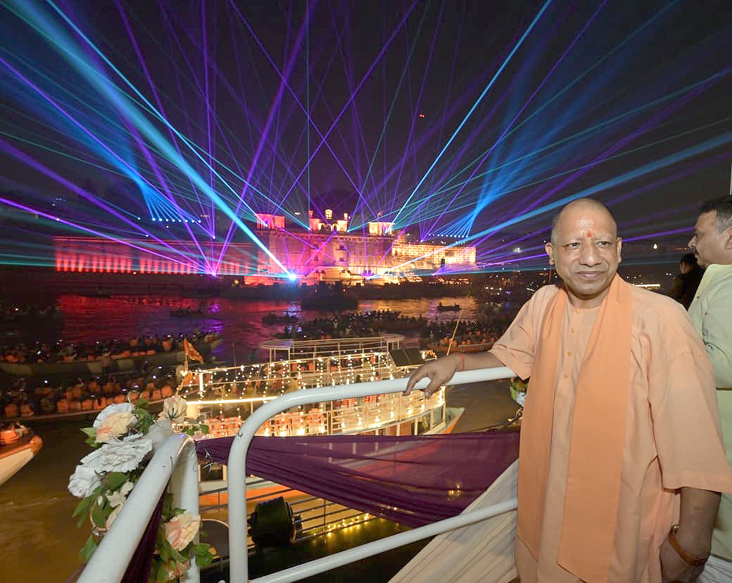 Varanasi, November 5: Uttar Pradesh Chief Minister Yogi Adityanath boarded a cruise from Namo Ghat in Varanasi to witness the festival of ‘Dev Deepawali’, celebrated by lighting lamps on the ghats of Varanasi on Kartik Purnima.
