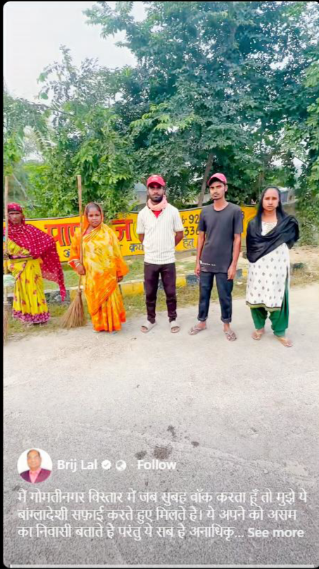 The former DGP has also talked to some such women and men during his morning walk and has gathered information about their original residence. These individuals were claiming to be residents of Assam, while he himself had spent a long time in Assam while leading a PAC battalion. He is fully aware of the geographical situation there. Calling these individuals citizens of Bangladesh, Brajlal also questioned the intentions of the Lucknow Municipal Corporation (LMC) and the local police administration.